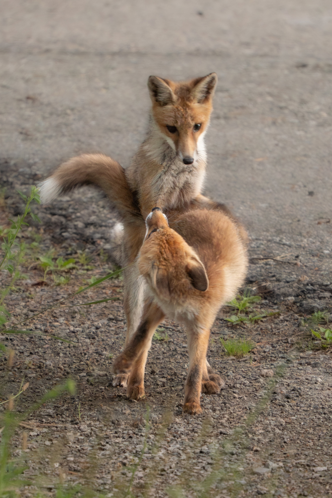 Tant els mascles com les femelles tenen un aspecte molt semblant, i les diferències físiques són molt subtils, així que principalment em guiava pel seu comportament, i tot i així no puc assegurar-ho 100%. Amb el temps vaig pensar que la guineu més curiosa i inquieta que em va enamorar des d’un inici era un mascle; és el petit mascle que protagonitza la portada d’aquest post.