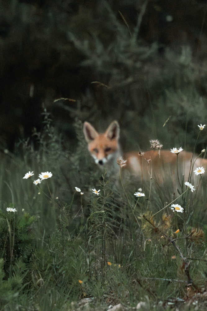 I no és que m’acosti tant, és el teleobjectiu. Amb un rang de fins a 500 mm, pots fotografiar animals a distància sense interferir en el seu comportament. En el cas de les guineus, però, és cert que sovint les tenia molt a prop. Però en general, no és el cas.