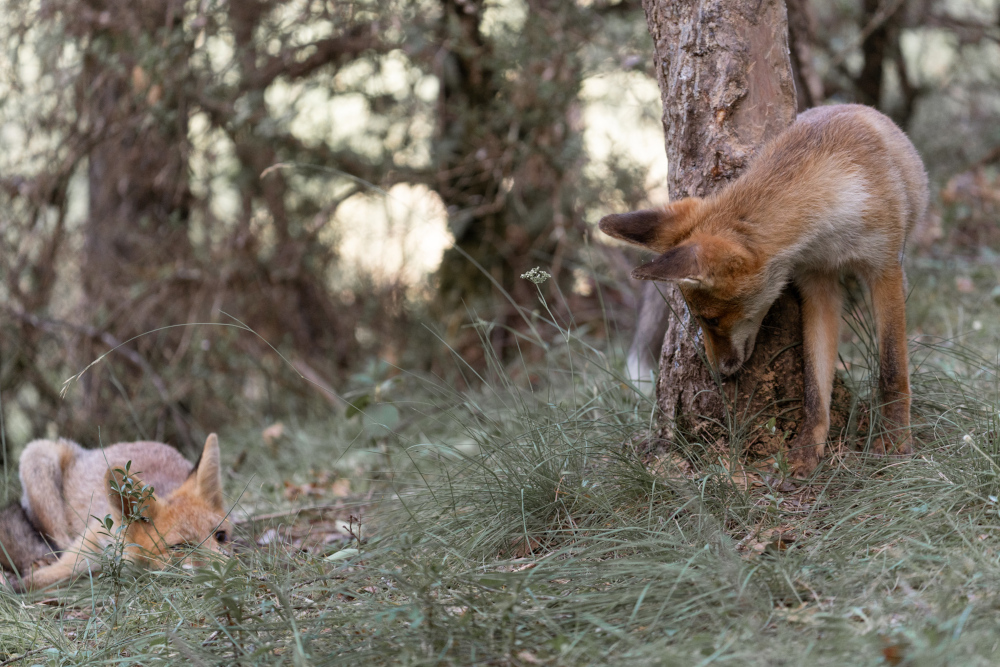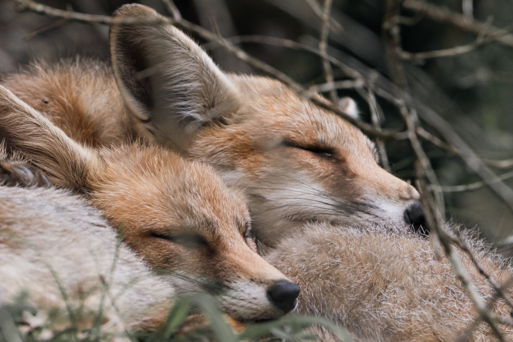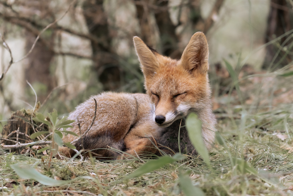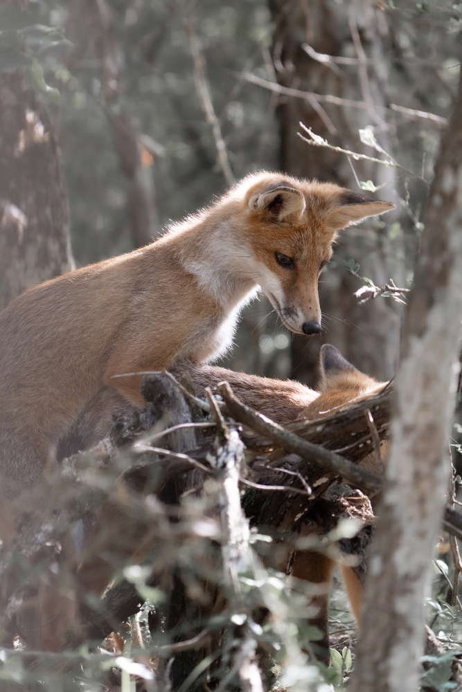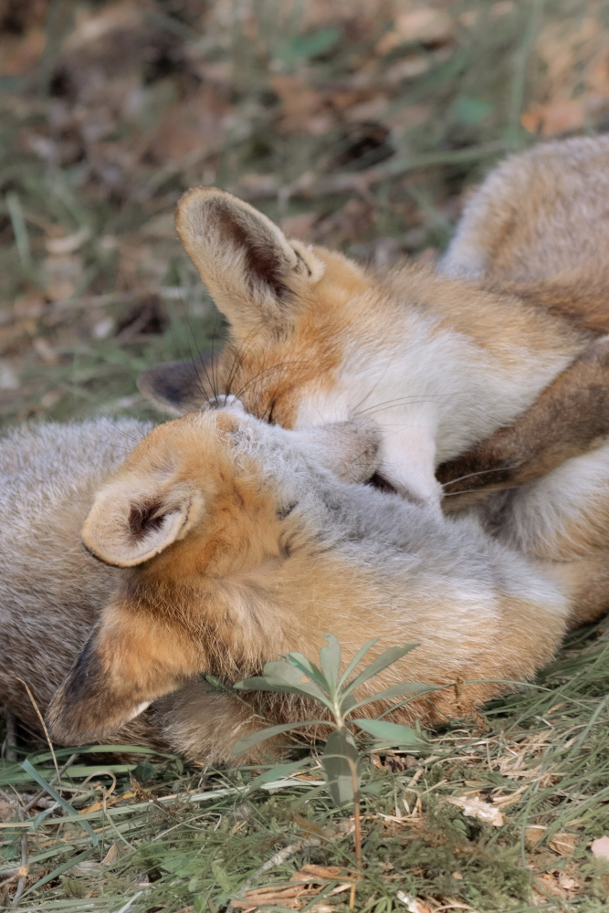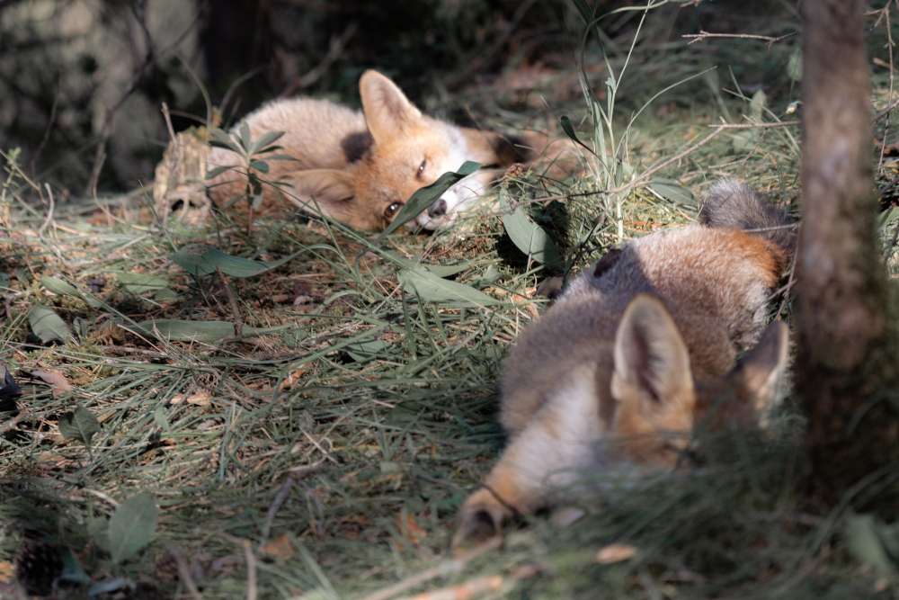 - L’enquadrament: Personalment, m’agraden les fotos minimalistes, on l’animal és el protagonista. Sense gaires distraccions del paisatge. Ara bé, les guineus m’ho van posar difícil; no sempre estaven a prat obert, passaven molta estona dormint dins un bosc força atapeït, fent que fos complicat aconseguir una foto neta sense troncs i herbes pel mig. Però d’això tracta també la fotografia de natura; d’adaptar-se al que tens davant a cada moment i treure el millor possible. En aquest cas, hi ha imatges que no són tan “netes” però que reflecteixen la pau que vaig sentir en tenir-les al meu costat. I guardar aquest record dels meus moments preferits amb elles ja és més que suficient.
