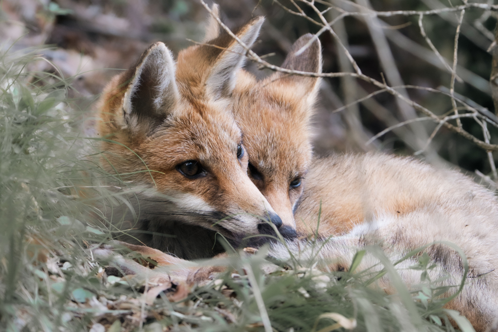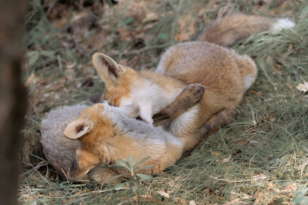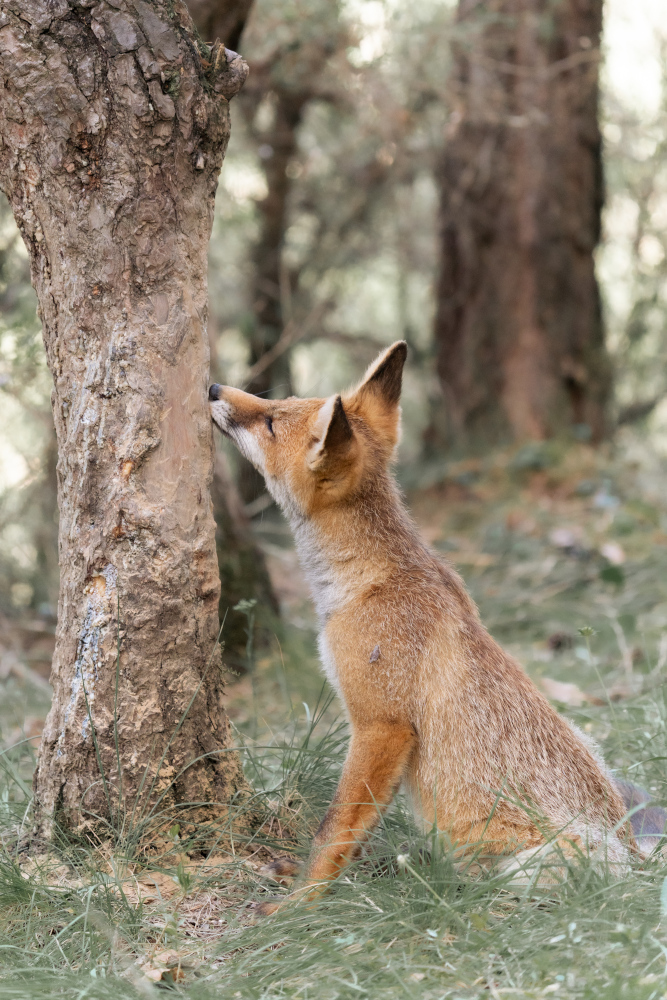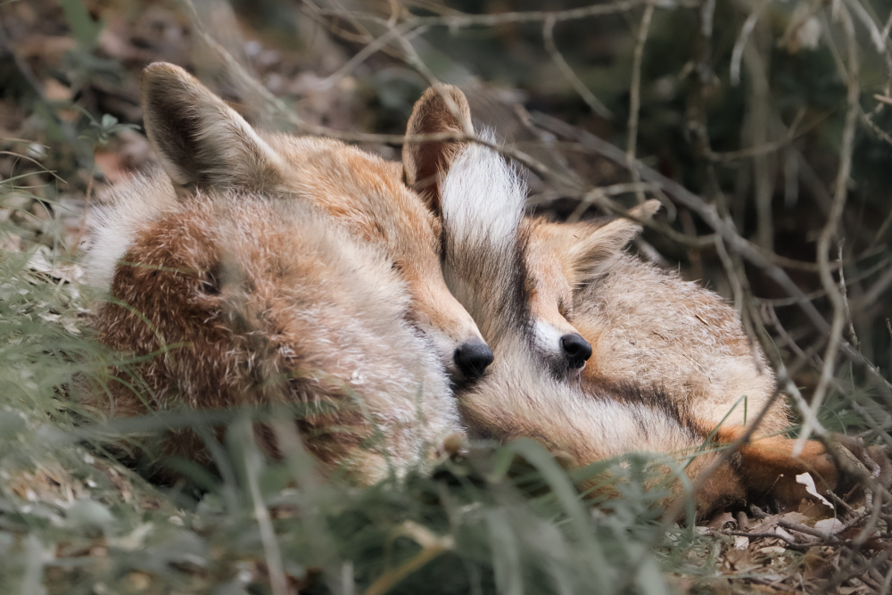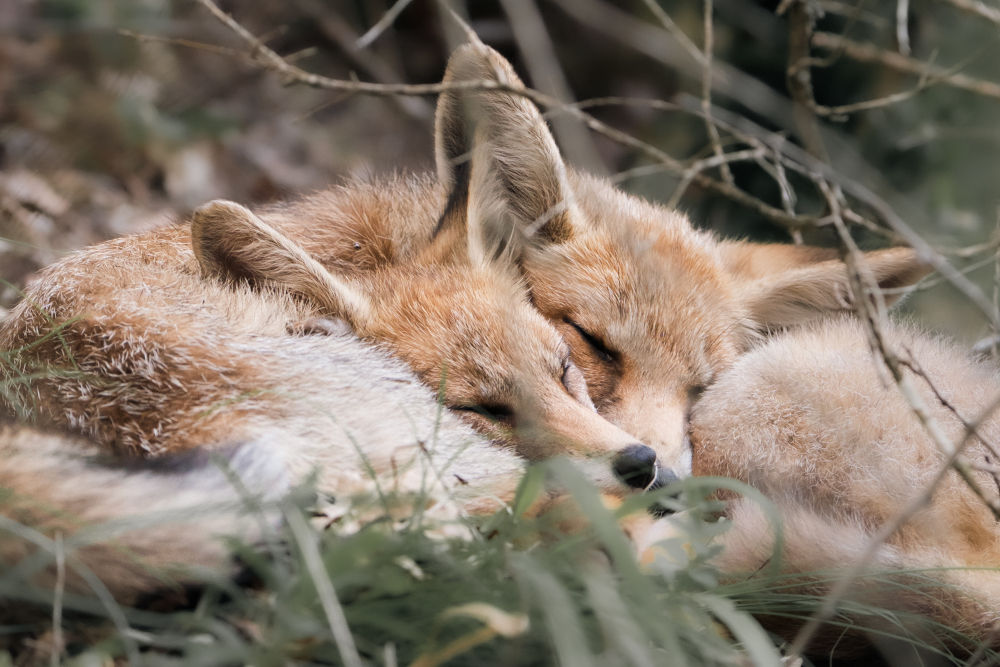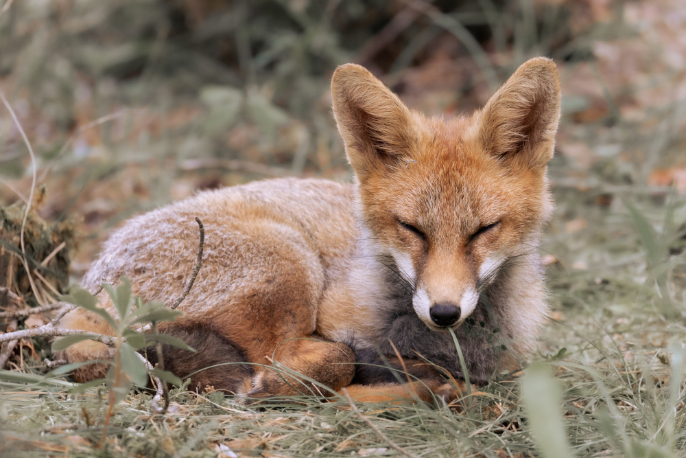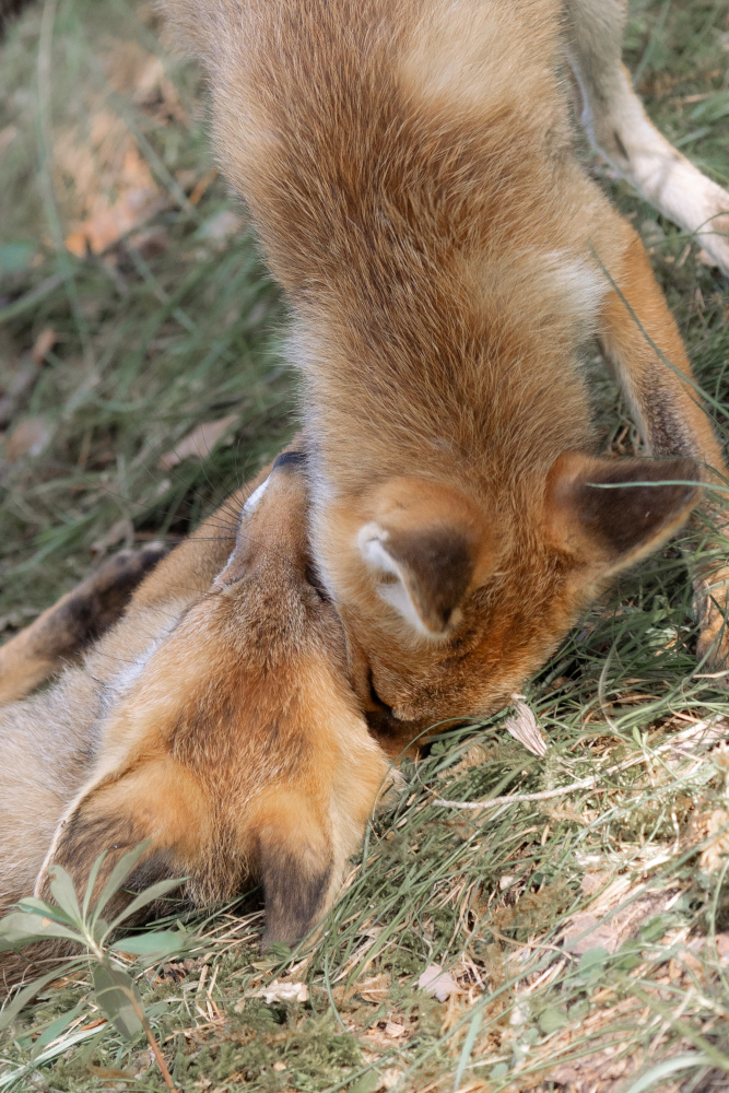 - L’enquadrament: Personalment, m’agraden les fotos minimalistes, on l’animal és el protagonista. Sense gaires distraccions del paisatge. Ara bé, les guineus m’ho van posar difícil; no sempre estaven a prat obert, passaven molta estona dormint dins un bosc força atapeït, fent que fos complicat aconseguir una foto neta sense troncs i herbes pel mig. Però d’això tracta també la fotografia de natura; d’adaptar-se al que tens davant a cada moment i treure el millor possible. En aquest cas, hi ha imatges que no són tan “netes” però que reflecteixen la pau que vaig sentir en tenir-les al meu costat. I guardar aquest record dels meus moments preferits amb elles ja és més que suficient.