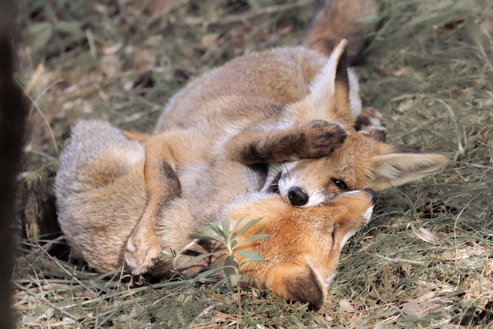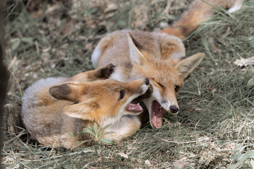 Al principi eren dues. M’havien vist, però aquesta vegada no van marxar. Al contrari; ens vam quedar quietes, en silenci, mirant-nos durant una estona fins que una d’elles va decidir acostar-se cap a mi. No m’ho podia creure… jo, que estava acostumada a que sortissin corrents, ara resulta que tenia una cria de guineu asseguda davant meu, mirant-me amb curiositat per esbrinar qui o què era jo.