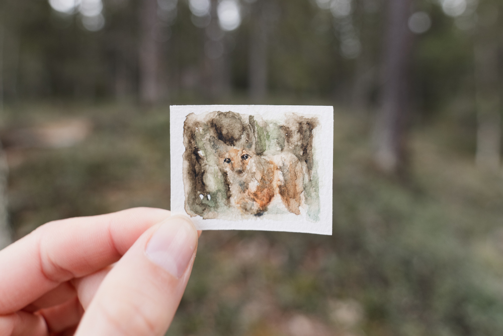 No volia acabar aquest article sense mostrar les aquarel·les que va fer de dues de les cries de guineu. Les seves pintures també formen part d’aquesta història, i la manera en què les va dibuixar —posant especial atenció a la seva mirada i transmetent la seva delicadesa— em va transportar, per uns instants, de nou a aquell bosc que tanta vida em va donar.