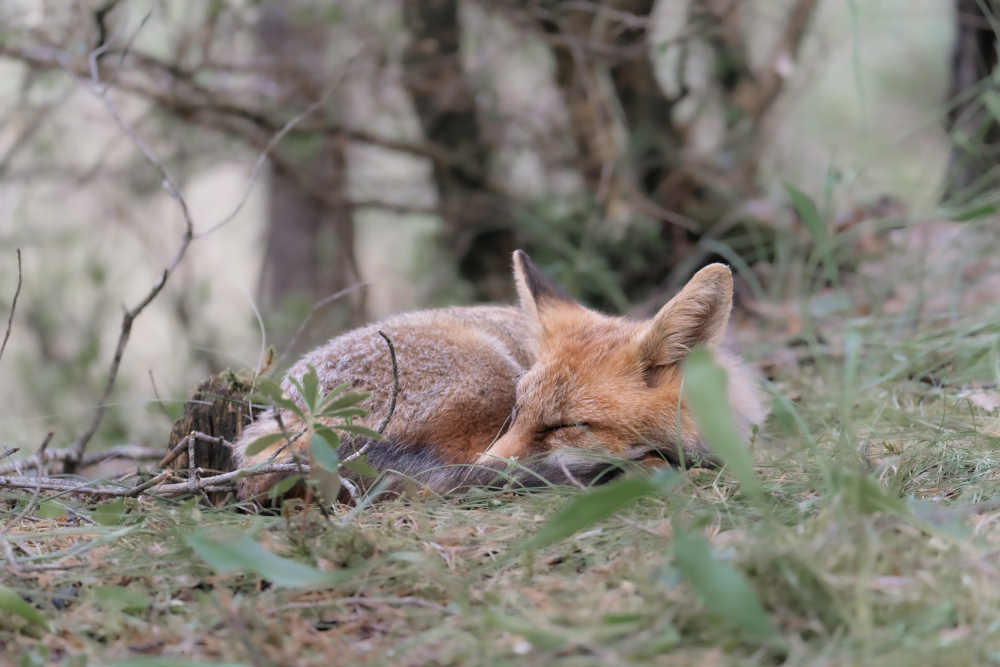- L’enquadrament: Personalment, m’agraden les fotos minimalistes, on l’animal és el protagonista. Sense gaires distraccions del paisatge. Ara bé, les guineus m’ho van posar difícil; no sempre estaven a prat obert, passaven molta estona dormint dins un bosc força atapeït, fent que fos complicat aconseguir una foto neta sense troncs i herbes pel mig. Però d’això tracta també la fotografia de natura; d’adaptar-se al que tens davant a cada moment i treure el millor possible. En aquest cas, hi ha imatges que no són tan “netes” però que reflecteixen la pau que vaig sentir en tenir-les al meu costat. I guardar aquest record dels meus moments preferits amb elles ja és més que suficient.