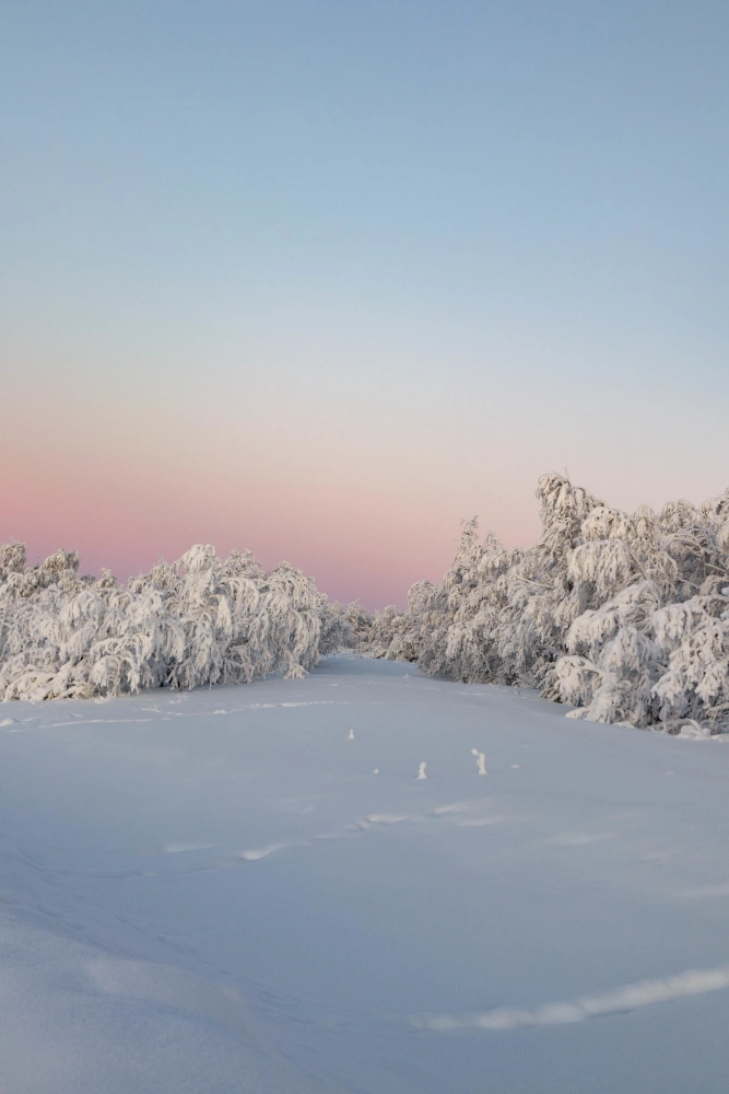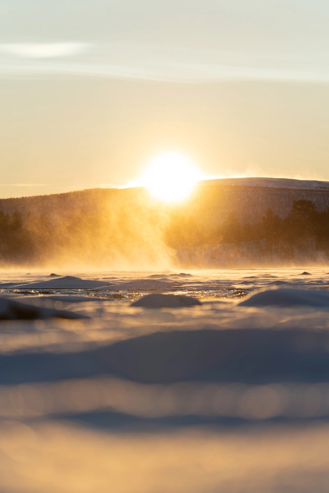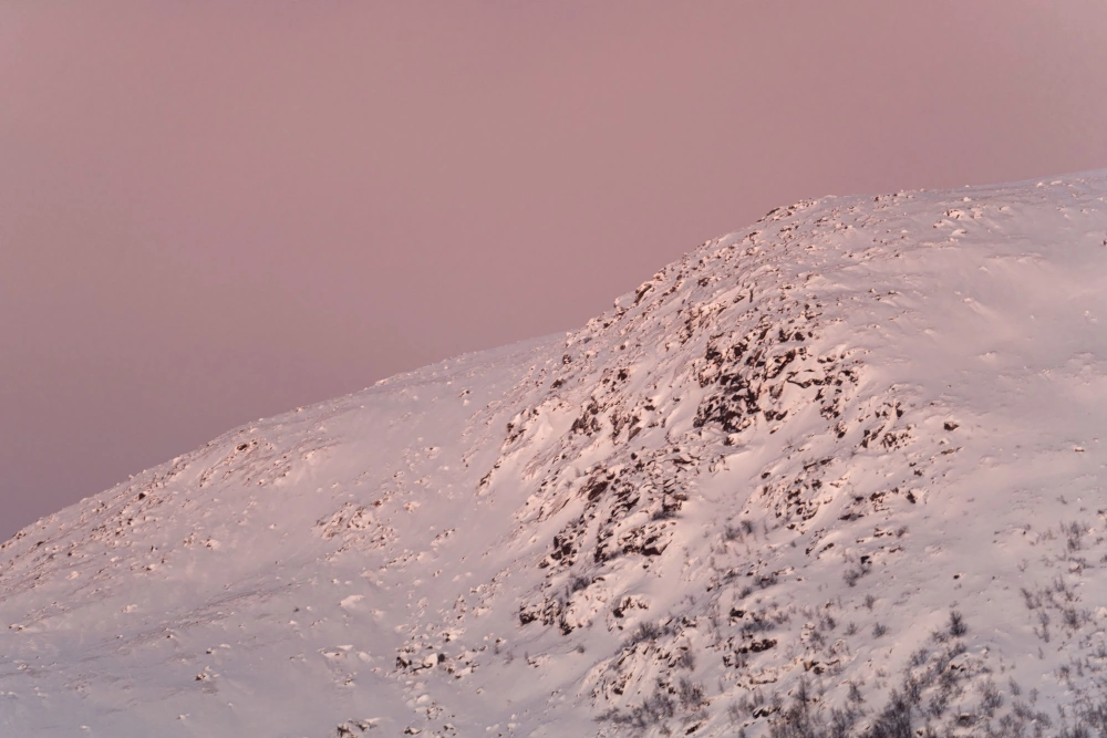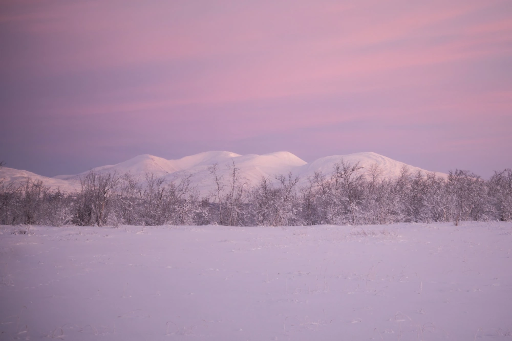 Aquest recull d’imatges es caracteritza pels tons blaus, roses i blancs, tan típics de l’Àrtic durant el període de nit polar. Durant aquestes setmanes, el sol no arriba a sortir per sobre de l’horitzó. Per sort, a les zones de la Lapònia Sueca on vaig estar —principalment Kiruna, Abisko i Nikkaluokta— no era sempre fosc. Al contrari del que molta gent pensa, durant la nit polar hi ha llum natural, i una de molt especial. És cert que el dia no té més de quatre hores de claror, però és com viure en una posta de sol constant. Amb el sol just sota l’horitzó, aquesta llum tènue pinta el cel amb tons blaus, roses i taronges, creant un ambient i una llum ideal per a fotografiar els paisatges i la fauna del lloc.